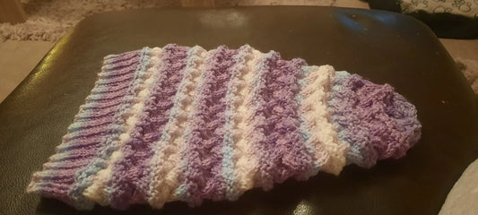 Mixed Purple Blue and White Hand Knitted Pixie Hat