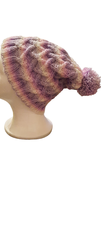 Purple and Pink Hand Knitted Cable Hat