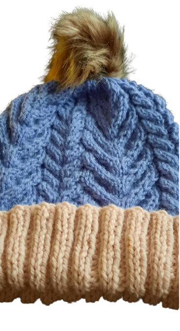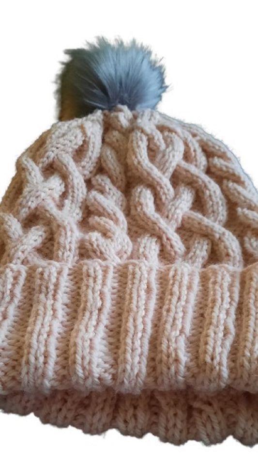 Hand Knitted Cable Hat and Detachable Pom Pom