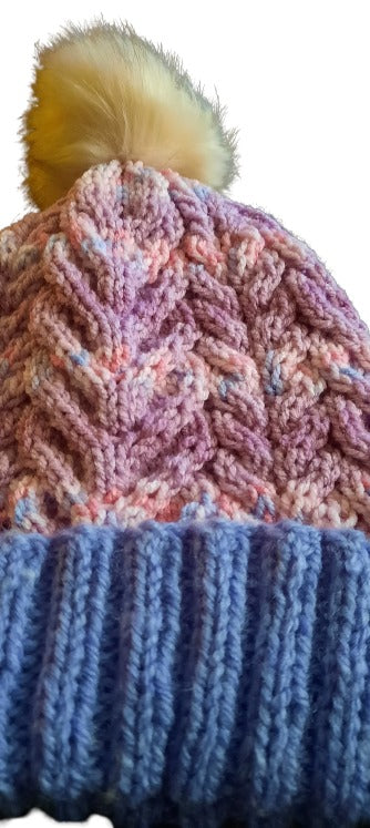 Handmade Pink and Purple Cabled Hat
