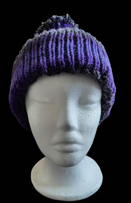 Hand Knitted Purple Mix Cable Hat